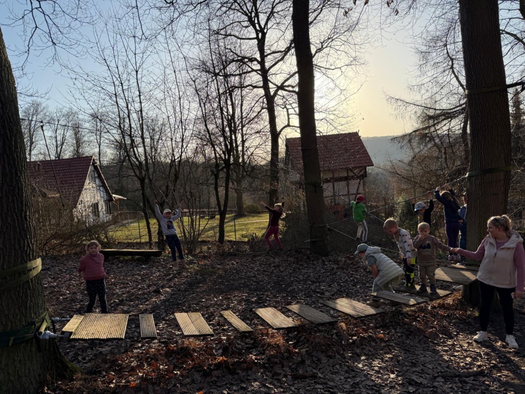 Ein besonderer Stopp war der Entdeckerpfad, an dem die Kinder nach Herzenslust erkunden, ausprobieren und staunen konnten. Mit viel Neugier wurden die Stationen entdeckt und die Umgebung erforscht. Für zusätzliche Unterhaltung sorgte unterwegs ein kleiner „Maulwurfkampf“, der bei allen für gute Laune und viele Lacher sorgte.